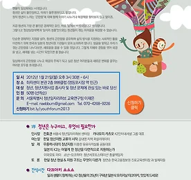 전체보기 썸네일형 리스트형 유자사운드 앨범 유자사운드 앨범이 나온지 어느덧 10주년 입니다. 시간이 이렇게 흘렀다는 것이 실감이 안나네요. 기념하여 이곳 홈페이지에 짧은 메모를 남겨봅니다. 참, 유자 앨범은 국내 주요 음원서비스와 애플, 스포티파이 같은 외국서비스에서도 yoojasound로 들으실 수 있습니다. 더보기 안녕~ 유자살롱 안녕하세요. 여러분. 오늘 유자살롱의 마지막 인사를 전합니다. 2015년을 마지막으로 유자살롱은 그동안의 모든 활동을 정리하고 문을 닫기로 했습니다. 지난 6년간 유자살롱을 아껴주신 여러분 진심으로 감사합니다. 저희는 음악인들의 새로운 창작 공동체를 꿈꾸었으며 청소년들의 마음을 채우는 따뜻한 아지트가 되고자 했습니다. 그동안 유자살롱이라는 이름 아래 인생에 다시 올 수 없는 멋진 순간들이 가득했음을 자랑스럽게 이야기할 수 있습니다. 이런 순간들을 만들 수 있었던 것은 모두 함께 했던 친구들, 어른들 덕분입니다. 한 분 한 분 다 나열하지 못하지만 유자살롱에 마음을 주셨던 모든 분들 감사합니다. 그동안 이 사회의 한 켠에서 작지만 깊은 울림을 만들어냈고 누구보다 치열하고 진실 되게 꿈을 꾸었지만, 저희를 .. 더보기 한일청년포럼 1탄: 멘붕시대의 청년들, 그 곤란함에 관하여 2013년 청년 사회 혁신 주체 양성을 위한 플랫폼으로 출발한 서울특별시 청년일자리허브가 오는 1월 21일(월) 오후 3시 30분부터 6시까지 하자센터 본관 2층 999클럽에서 '한일청년포럼 1탄: 멘붕시대의 청년들, 그 곤란함에 대하여'를 선보입니다. 하자센터의 자매기관인 서울특별시 청년 일자리 허브는 (주)K2 인터내셔널 코리아와 함께하는 이 포럼에서 한국과 일본, 양국 청년들의 현실과 그 지원구조에 대해 논의하는 장을 마련했습니다. 많은 분들의 관심 부탁드립니다.일시: 2012년 1월 21일(월) 오후 3시 30분~6시장소: 하자센터 본관 2층 999클럽(영동포시장역 1번출구 도보 5분)대상: 청년, 청년지원사업 종사자 및 청년 문제에 관심있는 바로 당신인원: 선착순 50명문의: 서울특별시 청년일자.. 더보기 <집밖에서유유자적> 6기 여섯번째 부족파티 http://www.yoojasalon.net/339 더보기 <집밖에서유유자적> 6기 여섯번째 작은공연 http://www.yoojasalon.net/334 (후기 1) 더보기 = 4회 캔들나이트 더보기 [두줄기타] 2NE1 - I Don't Care 실습영상 2011년 SK적정기술페스티벌에서 있었던 유자살롱의 원천기술 [두줄기타] 전수 과정입니다!여러분도 한 번 따라해 보세요 :) [두줄기타] 2NE1 - I Don't Care 더보기 2012 창의캠프 c-cube : 뮤직스크램블 아유 너무 재밌었어. 여러분 또 만나용 안녕~ 더 많은 사진은 유자살롱 페이스북(http://www.facebook.com/yoojasalon) 에서 보실 수 있어용~*(c-cube (창의캠프) 는 여기를 참고http://www.haja.net하세요 ) 더보기 이전 1 2 3 4 ··· 8 다음